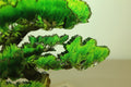 Bonsaiはアクリルで松のシルエットを表現した、新時代の盆栽です。葉や幹のプリントは、よりリアルに細やかに職人が丁寧に仕上げました。葉枝は一部後付け式になっており立体感を演出、クリア素材が光に当たり、葉の色に濃淡を生みます。能に用いられる「舞台松」をイメージしたデザインは、「寿」のシルエットを模しており、より伝統的で、よりめでたい意味を持ちます。