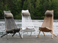 Eco Chairは、伝統的な構造をしっかりと取り入れたアウトドア折りたたみデッキチェアです。北欧生まれのファニチャーブランドEcoFurnの製品です。優しい手触りのデッキチェアは、釘などを使わず、木材とロープだけで組み立てるシンプルな作りなのに意外なほどに心地よい座り心地に仕上がっています。紐の締め具合で座り心地を調節できるもの魅力です。お庭やテラスなどアウトドアでの使用はもちろん、インドアでも良いアクセントとしてお使いいただけます。肌に触れる木の質感を存分に楽しみ、肌寒い季節にはブランケットやムートンをプラスして、北欧スタイルのインテリアコーディネートが楽しめます。
