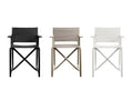 交差するポリプロピレンのフレームはワンプッシュで折りたたむことができ、シートと背面は強度と安定性の試験をクリアした高性能なファブリックを使用。畳んだ状態でもスタイリッシュにおさまるように設計され、実用性を考慮し軽量に作られています。屋内外で使用可能です。高精度の技術力が垣間見れるこの新しいディレクターズチェアは、ホーム空間のみでなく、パブリックスペースなど様々なシーンで利用することができます。