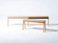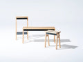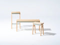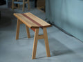 Hi.benchは、オークとスチールのミックスがが魅力的なベンチです。折り加工を施した鋼板を座面の中心に配置し、構造・造形の中心として構成したデザインになっています。鋼板パーツは、大きく面の落ちた木座面との調和により、優婉な表情を空間に覗かせます。座面中央のスチールは独自の調色で生み出した銅の色に仕上げています。スリムなサイズ感は、ダイニングテーブルと一緒に使っても、廊下や玄関のサイドスペースにも丁度良いサイズ感です。