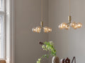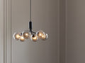 Apiales 6は、シンプルな6つの並びが美しいシャンデリアです。デザイナーの幼い頃の夏の思い出、祖父のコテージの側に咲くセリ、北欧の長い夏の夕暮れ、あたりに広がる美しい自然にインスピレーションを受け、Apialesコレクションは生まれました。吹きガラスのグローブを支えるアームは、花のつぼみを支える茎をイメージしており、ネジや結合部を見せないように、ディテイルにまでこだわってデザインされています。