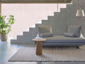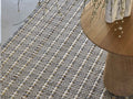 Goz Ame Beigeは、実際のチークウッドを編み込んだ特徴的なラグです。日本を代表する建築家、隈研吾氏のデザインです。Goz Ame Beigeは、雨からインスピレーションを受けたベージュ系のウールと断面が半月型のチークウッドを織り込んだ仕様です。