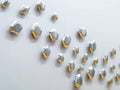 Kamyki Setは、大小の異なるサイズのオブジェを壁面に自由に貼り付けるウォールデコレーションです。独自の薄いスチールの板を風船のように空気で膨らますこと立体になった、有機と無機が同居したようなユニークなデザインです。高級感を保ちながら、アーティスティックで浮遊感のある印象です。この独自製法で2008年の鮮烈なデビューから国際的なデザイン賞を多数受賞しています。6セットで1.5kgと軽量なので取り付けも比較的簡単に行って頂けます。