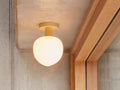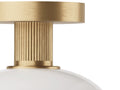 歴史的なスタイルを連想させる柔らかいフォルムを持つ3層オパールのガラスグローブとは対照的に、合理性を感じさせるダブルのメタルアームとリブのコントラストがモダンでグラフィックな印象です。
