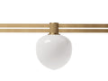 歴史的なスタイルを連想させる柔らかいフォルムを持つ3層オパールのガラスグローブとは対照的に、合理性を感じさせるダブルのメタルアームとリブのコントラストがモダンでグラフィックな印象です。