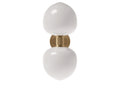 歴史的なスタイルを連想させる柔らかいフォルムを持つ3層オパールのガラスグローブとは対照的に、合理性を感じさせるダブルのメタルアームとリブのコントラストがモダンでグラフィックな印象です。