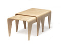 Nesting Tableは、一枚板から生まれるサイドテーブルです。11mm厚のバーチ合板の一枚板から裁断・成形され、1936年の発表当時、「史上最もシンプルなテーブル」と評されました。無垢材に比べ薄くても強度があり、しなやかな造形を可能とするプライウッドの特徴を生かしたミニマルなテーブルは、現在もなお色褪せないモダンデザインの名作です。シンプルで使う場所を選ばないテーブルは、サイズの若干異なるM、Lの2サイズ展開。MはLサイズの下に入れ子状に完全に収まります。単体でも組み合わせてもご利用いただけます。