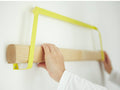 Toteは、壁面に美しい本やお気に入りの本を飾っておけるブックシェルフです。一本の木材と一本のステンレスフラットバーのふたつからなるシンプルな構造で、取り付け方も簡単です。まずはリボンのようなバーを壁に取り付け、木材を壁とバーの間に入れるだけ。バーは木材を固定する器具であると同時に、本の落下防止の役割も担っている優れた構造です。壁に多数設置してもいいし、軽いので扉を飾るのにも最適です。バーにちょっとしたものをかけることもできます。