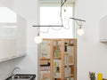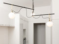 Nh Suspension S3 14は本体のバーに3つのランプを自由に配置できるペンダントランプです。インダストリアルな印象のバーに、美しいホワイトガラスのボール型シェードと真鍮のパーツで構成されたランプを、文字通り引っ掛けて使用します。ランプの位置は雰囲気やコーディネートによって自由な配置が可能で、ケーブルの絡ませ方もカジュアルな印象です。55cm x 1、87.5cm x 2の合計3本のバーをワイヤーで吊って使用します。中心のワイヤーは共通で、これを起点として3方向に自由に配置が可能です。提灯を思わせるようなデザインは、カジュアルながらしっかりと上品で、空間の中心として活躍してくれます。