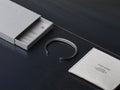 Framework Cuffは、内輪が細くなったような独自の構造が特徴的なカフ/ブレスレットです。本体を縦に切った時に現れるT型の構造は、工業製品などに見られる軽量ながら強度を保つための鉄のカタチです。これをデザインのインスピレーションとして利用し、結果としてシンプルながら力強く美しいカフが完成しました。純粋に着用したくなるデザインです。