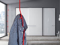Loop Ropeは、天井から吊るすスタイルのコートフックです。ロープがぶさ下がっているだけのシンプルなデザインですが、フックとなるループが4箇所仕込まれてコートラックとして機能し、その意外性と美しいカラーで大きな存在感を誇ります。このループはいつでも上下に移動が可能で、もちろん一度動かしたら、その位置に留まります。天井高2.4mに設置可能なので、比較的高い天井の空間でもお使い頂けます。