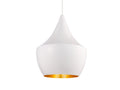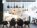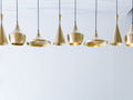 Beat Fat Pendantは真鍮の独自の表情が美しいペンダントランプです。北インドにて熟練した職人により、真鍮板をまわしながらひとつひとつ手打ちで製造されています。元々は水瓶やオブジェを制作する為に使われていた技術を、Tom Dixonが照明器具と言う全く異なった用途を考えだしただけでなく、工芸品をデザイン・オブジェに昇華させた名作です。シェード内に設置された光源はシェード内を反射しながら、シェードの周辺をほのかにやさしく照らします。