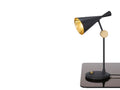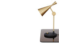 Beat Table Lampは真鍮の独自の表情が美しいテーブルランプです。北インドにて熟練した職人により、真鍮板をまわしながらひとつひとつ手打ちで製造されています。元々は水瓶やオブジェを制作する為に使われていた技術を、Tom Dixonが照明器具と言う全く異なった用途を考えだしただけでなく、工芸品をデザイン・オブジェに昇華させた名作です。シェード内に設置された光源はシェード内を反射しながら、シェードの周辺をほのかにやさしく照らします。テーブルランプモデルは全高53cmとデスク、テーブル、シェルフにちょうどよいサイズで、上部のアーム部分が180°可動します。ベース部分に無骨なスイッチがついているのも特徴的です。