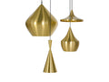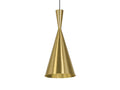 Beat Tall Pendantは真鍮の独自の表情が美しいペンダントランプです。北インドにて熟練した職人により、真鍮板をまわしながらひとつひとつ手打ちで製造されています。元々は水瓶やオブジェを制作する為に使われていた技術を、Tom Dixonが照明器具と言う全く異なった用途を考えだしただけでなく、工芸品をデザイン・オブジェに昇華させた名作です。シェード内に設置された光源はシェード内を反射しながら、シェードの周辺をほのかにやさしく照らします。