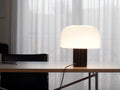 Bellhop Glass Tは、シンプルなフォルムと乳白色のガラスシェードが特徴のテーブルランプです。