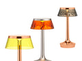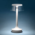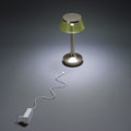 BON JOUR Unplugged は、現代のコンパクトテーブルランプです。ベース部分のマイクロUSBコネクタより、3時間の充電で6時間点灯が可能です。今まではケーブルごと移動しなければならなかったのに対してコードレスなので、好きな場所に気軽に持ち運んで御使用頂けます。ちょっとしたバルコニーや屋外での時間や、読書スペースの移動に便利です。タッチスイッチにより100%-70%-30%-3%-消灯と段階調光が可能です。また、3秒長押しすると明るさが3%となり、常夜灯としても便利です。底面には、タッチスイッチをオフにできるロックスイッチが設けられています。