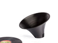 Change The Record - Signed Editionは、内部にスマートフォンを置くことで音がアナログ的に拡散されるオブジェ/スピーカーです。傷や損傷のために廃棄されたり本来の機能を果たせなくなったレコードを、熱を利用して、漏斗型に再成形した作品です。廃棄される運命にあったレコードが、電源やコードを必要としないスマートフォン用のスピーカーに生まれ変わり、デジタル音楽が主流の今日の私たちの生活の中で、レコードに新たな役割を与えています。原理は、スマートフォンから出る音を増幅させるというもので、スマートフォンで使用するメガホンというようなところでしょうか。もちろん電源や電池は必要ありません。現在ではすっかり目にかけることが無くなってしまった12インチのレコードを熱で変形させた魅力的なデザインを、デザイナーのサインも入ったコレクターピースです。