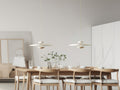 Cloud On Canvas Pendant Lightは、クラシックな印象を現代的にブラッシュアップしたような印象が美しいペンダントライトです。大きな空にぷかぷかと浮かぶ雲は、刻々とカタチを変えながら、空に絵を描いているようでもあります。そんな雲のカタチからインスピレーションを得て、3つのパーツで構成されたシェードが生まれました。LEDモジュールを光源とし、光源を器具下部に仕込むことでアッパーライトの効果があり、大きなシェードに反射してやさしい光が広がります。また光源が直接見えないので、まぶしさもありません。LEDは忠実に自然光と同じスペクトルを再現。CRI(演色評価数)は脅威の97を記録し、自然光(100)とほぼ同等の性能を有しています。特に自然光との類似度を評価するColor Fidelityカテゴリーでは、Rf95以上を満たし、LED光源としては業界初のダイヤモンドグレードに登録されたLEDを使用しています。その効果は目の快適さ、近視改善、学習力の向上、睡眠の質改善など研究所の実験で証明されています。