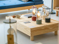Crate Series Green Hingeは、美しい佇まいの収納付きローテーブルです。天板下にクレート状の収納スペースを備え、緑のヒンジで開閉可能という便利な機能を全く機能性を感じさせないシンプルなデザインで仕上げています。収納テーブルとして書籍やリモコンなどを隠せて機能的で、北欧風インテリアでもモダンスペースにもマッチしる、美しくシンプルで使いやすいデザインです。