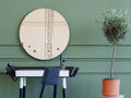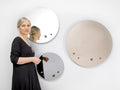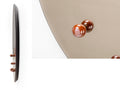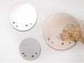 Dewは、美しいカラードミラーに小さなフックが付いたウォールミラーです。美しい雫Dewのような特徴的なセラミックビーズ素材のフックが4箇所に配置され、アクセサリーや鍵などを掛けてご使用いただけます。丸いフック部分の美しく仕上げられ、ミラーのカラーとそれぞれマッチングの良いカラーリングとなっています。何も掛けないときでも、常設されたフックの反射が美しい立体感を生み、また、アクセサリーを掛けた場合は全体がジュエリーのような印象となります。玄関スペースやベッドルーム、バスルームなどに特徴的な印象を与えるデコラティブミラーです。