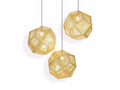 Etch Pendant50cmは、数学的な探究心から生まれたペンダントライトのラージサイズ50cmモデルです。厚さ0.4ミリの金属板をデジタルエッチング技術で加工し、その金属板を組み合わせることで、立体的なフォルムを形成しています。一般的に目にする幾何学パターンと一線を画し、非常にランダムな立体を生み出しています。結果として好奇心をくすぐられ、引き込まれるようなデザインに仕上がっています。50cmのサイズは広めの天井空間、吹き抜け部分などで大きなインパクトを誇ります。単灯での使用は勿論のこと、複数灯を組み合わせたりと、さまざまなシーンでお使い頂ける美しい照明です。