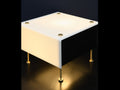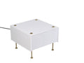 脚=真鍮(ブラスト仕上げ)、カバー=乳白アクリル、本体=スチール板