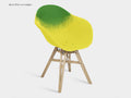 Gravêne 6.7 Wooden Legs Arm Chairは、シェルの美しいカラーリングが特徴的なアームチェアです。また、ウッド脚のデザインも独自で、クラッシックなチェアデザインを踏襲しながら全く新しい印象をまとっています。シェルの部分は、プラスチック製品の工場から捨てられる産業廃棄物のプラスチック粉をアップサイクルし製造されています。デザインはユニーク、かつ人間工学に基づき座り心地は快適に。製造時に流れ落ちるプラスチックの様子を映し出すかのようにデザインされました。