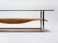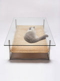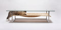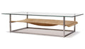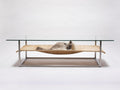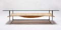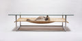 Hammockは、ガラスの天板の下にラタン製のハンモックをあしらったローテーブルです。緊張感のあるガラスと、リラックスの象徴ハンモックのコントラストが美しいバランス感を表現しています。ハンモックの上にはアートピースのように季節ごとのディスプレイをしてもよし、ランダムに生活必需品を入れても様になります。猫を飼っているご家庭なら、猫のお気に入りスポットになるかもしれません。日本人デザイナー二俣公一氏のデザインにより、サイズ感も日本の家庭にしっかり馴染みます。独自の浮遊感を、作りこみすぎず、自然に美しくご使用頂けるローテーブルです。
