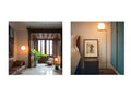 乳白色の球が、サーカスの道具のように魔法のバランスを保つ照明のシリーズです。光沢感のある真鍮の棒の上に絶妙なバランスで留まるアーティスティックなデザインです。