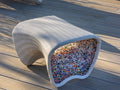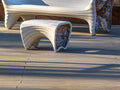 In-side Low Table/Stoolは、回転成型によって生まれる独自の模様に着目した屋外ファニチャーのコレクションから、テーブル/スツールです。成型時に遠心力が働くことで、他色フレーク(再生プラスティック)が内部に広がり、まるで鉱物が詰まったジオードのような表情を生み出します。その偶発的な美しさをあえて表面に表現することで、一点ごとに異なるユニークな模様が生まれるのが「In-Side」シリーズの特徴です。環境負荷を抑えながらも、素材の魅力を最大限に引き出すデザインに仕上がっています。室内仕様はもちろん、屋外空間にも、アートのような個性と洗練をもたらします。
