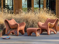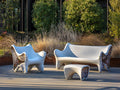 In-side Sofaは、回転成型によって生まれる独自の模様に着目した屋外ファニチャーのコレクションから、ソファです。成型時に遠心力が働くことで、他色フレーク(再生プラスティック)が内部に広がり、まるで鉱物が詰まったジオードのような表情を生み出します。その偶発的な美しさをあえて表面に表現することで、一点ごとに異なるユニークな模様が生まれるのが「In-Side」シリーズの特徴です。環境負荷を抑えながらも、素材の魅力を最大限に引き出すデザインに仕上がっています。室内仕様はもちろん、屋外空間にも、アートのような個性と洗練をもたらします。