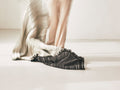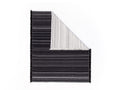 Interaction Blanketは、特徴的なストライプのブランケットです。送信されたデータ情報を元に糸を織るデジタル織り機。こちらのブランケットはその工程におけるデジタルとアナログの境界域(技術的な限界領域)にバグをあえて誘発させたものです。本来そこにあるべきデータ上の姿が、織られることで逆に消え、予定不調和な姿を描き出しています。表裏のカラーのコントラストや、ランダムに規則性を持った魅力的なブランケットです。