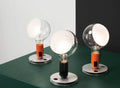 Lampadinaは、1972年にトリノのフロスストアのオープ二ングのために限定版として生産されました。トリノでの大成功をおさめた後、工業生産に移すことが決定されました。やがてこの小さなオリジナルのテーブルランプは、Castiglioniの最も象徴的なオブジェクトの1つになりました。電球を意味するLampadinaは、シンプルで独創的なデザインにちなんで名付けられました。大きな電球はまぶしさを軽減するため、部分的にフロスト加工に仕上げています。余分な電源コードは、スイッチが組み込まれたアルミニウムベースのホルダーに格納されます。