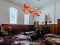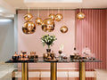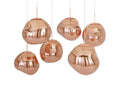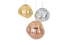 Melt Pendantは、メルトの名の通り、溶け出すような印象が特徴的なペンダントランプです。世界的に人気のスウェーデンの前衛的なデザイン集団、Frontとのコラボレーションから生まれました。ポリカーボネート製のシェードの不規則な凹凸面へ光を乱反射させることで、物体が溶け落ちていくような視覚効果を演出します。また、進化した真空蒸着技術により、消灯時には点灯時と全く異なる表情を見せ、周りの景色を映し出す鏡のオブジェへと変化します。捉えようのないフォルムと表情を様変わりさせるカラーが絶対的な存在感を誇る照明です。