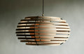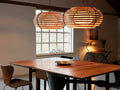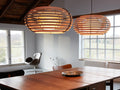 Moonは木製のシェードが特徴的なランプです。木漏れ日からインスピレーションを受けて生み出されたMoonは、太陽の光が葉や木々を照らしているときに生み出されるユニークな模様と影のような印象が特徴的です。光に対する情熱を照明デザインとして生み出しているデンマークの熟練職人・デザイナーのBrian Kirkによって、コペンハーゲン郊外の自然と静寂に囲まれたアトリエで製作されています。作品の中で最も成功を収めた代表的なペンダントランプがMoonです。木製の帯状のシェードの中に光を包み込むようなインナーシェードを配置し、優しく柔らかな表情がダイニングはもちろん、リビングや書斎などこだわりの空間でコーディネートしてください。