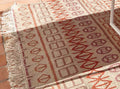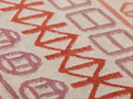 アフリカのモチーフからインスピレーションを受けたNaiduキリムラグです。象形文字のようなオーガニックなパターンを散りばめ、モダンにアレンジしています。涼しげながら、冷たくない、温かみのあるデザインです。