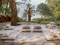 Nomad Tuareg Rugは、インド固有のパターンに着想を得た再生PET100%素材が特徴のラグですブルーはニットのような編み目のパターン、ホワイトは小さな花々が互い違いに咲くパターンでどちらも使いやすいデザインが特徴です。Nomadコレクションは、リサイクルPET繊維が手織り機でどのように機能するかを検証するため、メーカーであるGANの一員がインド各地でリサーチを行っていた際に開発されました。インドの伝統工芸という遺産を受け継ぎ、尊重するオマージュでありながら、よりサステナブルな素材で仕立てられた一枚です。