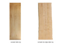 クリの無垢材で出来たくっきりした木目の重厚なテーブルトップ。 板が反っていかないように 「端バミ」と言う加工がされています。