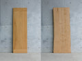耳付き一枚板のテーブルトップ。 クリのくっきりした木目は無垢の材質もあいまってとっても重厚。板が反っていかないように、同じ無垢の栗材を加工して木目を交差させて組み上げる「反り止め」と言う加工がされています。この反り止めはテーブルの脚がズレないように固定する昨日にもなっています。