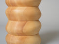 Otto Stoolは、波打つようなシルエットが特徴的なスツールです。“Otto”とはイタリア語で“8”の意味。一見単調に見える円柱形状の中には、8度傾いたラインがリズミカルに浮かんで見えます。この特徴的なラインは見る方向によってシルエットや木目の表情にわずかな変化を与え、空間の中でさりげなく主張するアクセントとなっています。