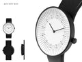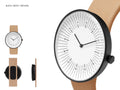 Outline Watchは、時間を計る事にフォーカスしたピュアなデザインのウォッチです。一般的なインデックス、数字、針の構成ながら、それらをしっかりと再構築することで、現代的でネクストスタンダードとしてお使い頂けるデザインに仕上がっています。外側から内側に向かい、毎分を表す大胆なラインが特徴的で、中心の空間、シンプルな構成の針を美しく印象づけます。