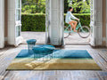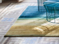 美しい景色をラグ上に表現したPaysagesです。地平線の地球の境目、太陽に照らされた黄金の大地、地中海の空気感、これらを夢のような雰囲気と融合させた絵画のようなラグです。細密な色の重なりが光の当たり方で変わって見えるのも特徴的です。目に見える場所に大胆に何も置かずに床面の絵画のように、またはガラスやワイアやーテーブルの下で使用したいラグです。