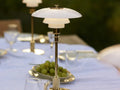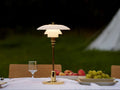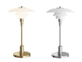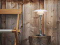 Ph 2/1 ポータブルは、シェードは乳白色の吹きガラス、ステムとベースは、シルヴァークロームまたは真鍮メタライズド。クラシックなモデルの、ミニサイズ、コードレスバージョンです。本棚の中やベッドサイドテーブルの上など、電源コードが届きにくい場所に最適で、屋外での使用も可能です。