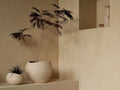 Plantas Planterは、ナチュラルな素材と無釉炻器素材が特徴のプランターです。曲線的なフォルムと不規則でしわのような表面が特徴です。マットなアイボリーストーンウェア(無釉炻器)で作られており、自然な質感を持っています。ひとつひとつ職人の手で仕上げられているため、すべてが唯一無二の存在です。室内用としてデザインされていますが、購入時に付属するガイドラインに従えば屋外でも使用できます。