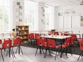 Series E Chairは、ミニマルなポリプロピレン製のスタッキングチェアです。英国モダンデザインの巨匠、Robin Dayによって1971年にデザインされた、射出成形によるポリプロピレン製のスタッキングチェアです。 スクールチェアとして人間工学に基づきデザインされたため、教育機関向けの椅子の基準を定めた厳しいヨーロッパ規格をクリアし、確かな耐久性と安全性を兼ね備えています。座面には、適度な耐衝撃性と堅牢性を兼ね備えた高品質のポリプロピレンを使用。デザインの特徴でもある中央に空いている角の丸い長方形の穴は、持ち運びを容易にするのと同時に、使用するポリプロピレンの量を減らすことで軽量化を実現しています。