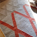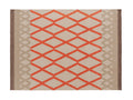 オレンジの格子柄が特徴的なSiouxキリムラグです。地中海沿いの大地をパターンにしたような美しいデザインは、どんな空間にもなじみやすく、使いやすい一枚です。スペインで活動する3人組、Odosdesignによるデザインです。