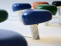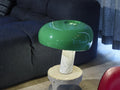 Snoopy Colorsは、照明デザイン史上最も独創的なデザインのひとつである伝説的なテーブルランプです。その名の通り、スヌーピーの横顔に似ていることからネーミングされました。長年にわたりブラックのエナメル加工を施したメタルシェードをメインとしていましたが、新たにコレクションに印象的なネイビーブルーを追加しました。このネイビーブルーはカスティリオーニ兄弟が1966年に発表した豊かな色彩パレットで人気を博した多機能ライトSciukoランプからインスピレーションを得ています。その他、過去に展開されていたグリーン、オレンジも展開をスタート。一見アンバランスにも見えるシェードが重厚な大理石のベースにより絶妙な一体感見せます。大理石のベース+スチールのシェード+クリアガラスのシェード受け+電球というシンプルな構造です。シェード上部にあいた3つの穴はボーリング球の穴を彷彿とさせるユニークなデザインも特徴です。