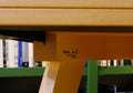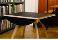 円形から四角に扁壷する際、天板を回転させると外周が垂れ下がります。そして、垂れ下がった部分は強力なマグネットにより天板裏に固定されます。足の裏2箇所にはガタつき防止のためのアジャスターが装備されています。また、天板下にMax Billのサイン入りとなっております。