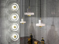 Stone Wall Lampは重厚感のある大理石から透過する光が特徴的なペンダントランプです。白い大理石と透明なガラスの二つの素材を通して放たれる光のコントラストが楽しめるエレガントなたたずまいの照明です。大理石は光を通す特性があり、この美しさを純粋に楽しめる仕上げです。また、大理石の特性上、同じものが一つとなく、グレーの斑点を多く持つモノから、葉脈のようなパターンなど、個体毎に異なった模様をお楽しみ頂けます。