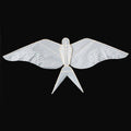 グラフィカルなモチーフが魅力的なSwallow Kiteです。天使を思わせるような表情と、大きく広げた羽が特徴で実際に飛ばすことも出来ます。もちろん、お部屋にディスプレイしても印象的なアイテムです。竹ひごとテリレンシルク(ポリエステル系)を使用してハンドメイドされています。風に乗ると羽ばたくような印象で飛行します。日本凧のように空高く、とまではいきませんが、楽しく飛ばすことのできる日常を少しハッピーにしてくれるカイトです。ギフトボックス入りで、プレゼントにも最適です。